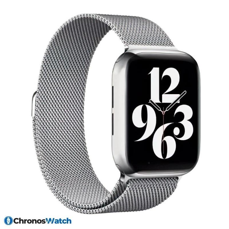 Il cinturino di Chronoswatch in acciaio inossidabile, detto anche in ''maglia milanese'', avvolge il polso alla perfezione e può essere regolato esattamente come vuoi, dal momento che è interamente magnetico. Si presenta con un design curato ed elegante che riporta all'attualità e rende moderno un design concepito a Milano nel XIX, pertanto è consigliato da utilizzare nelle occasioni speciali. L'obiettivo di questo cinturino è quello di rendere lo smartwatch ancor più elegante e lussuoso pertanto è adatto principalmente ad essere indossato in occasioni di feste o ricorrenze speciali!
